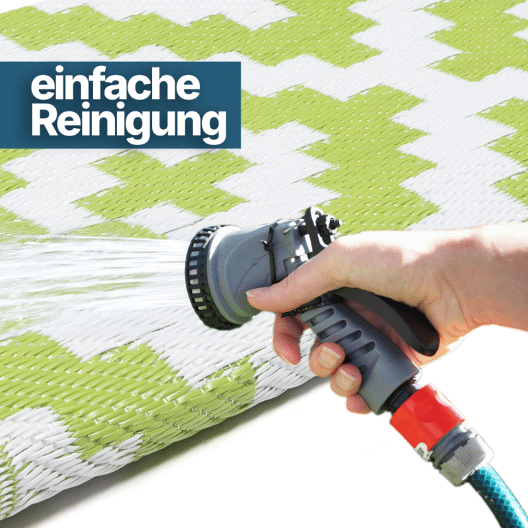 Der Outdoor-Teppich Ibiza ist eine perfekte Lösung für Liebhaber des Sonnenbadens oder Entspannens auf der Terrasse, die einen angenehmen Ort zum Entspannen im Freien haben möchten. Dieser grün-weiße Teppich wurde speziell für Menschen entwickelt, die Wert auf Stil, Funktionalität und Haltbarkeit legen.
