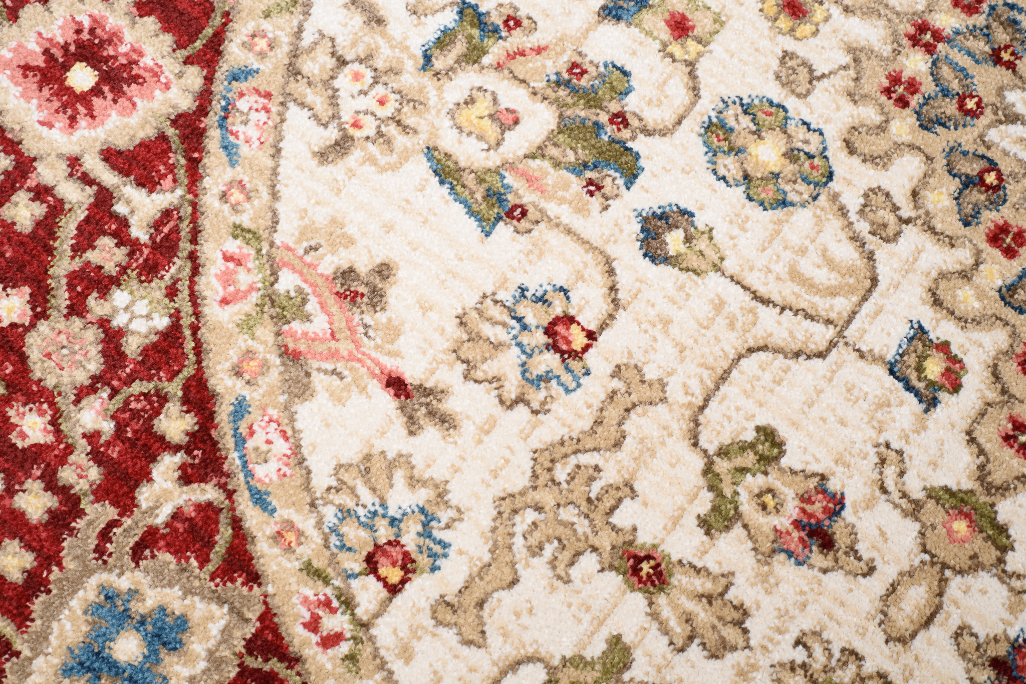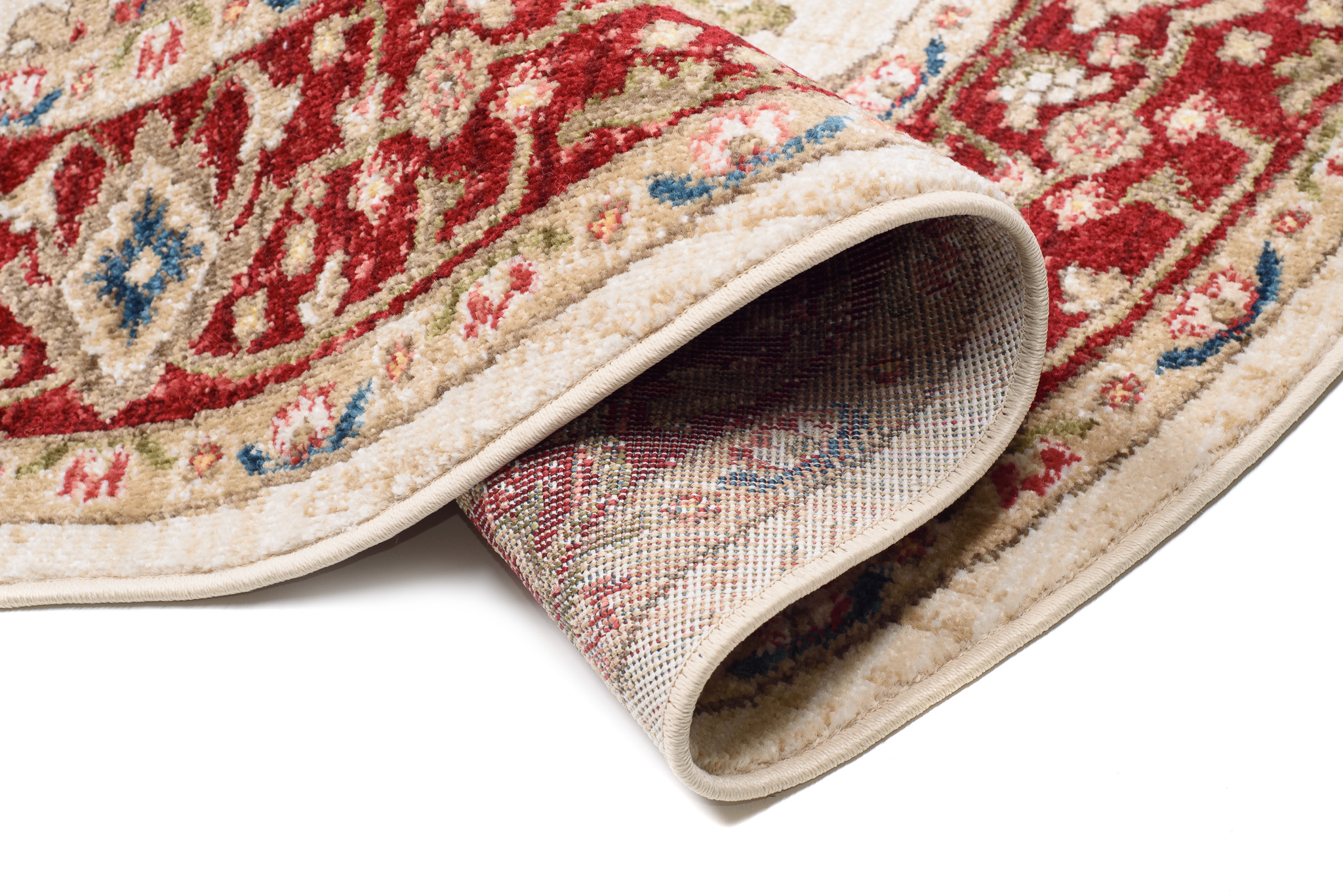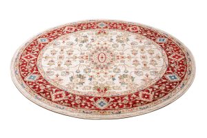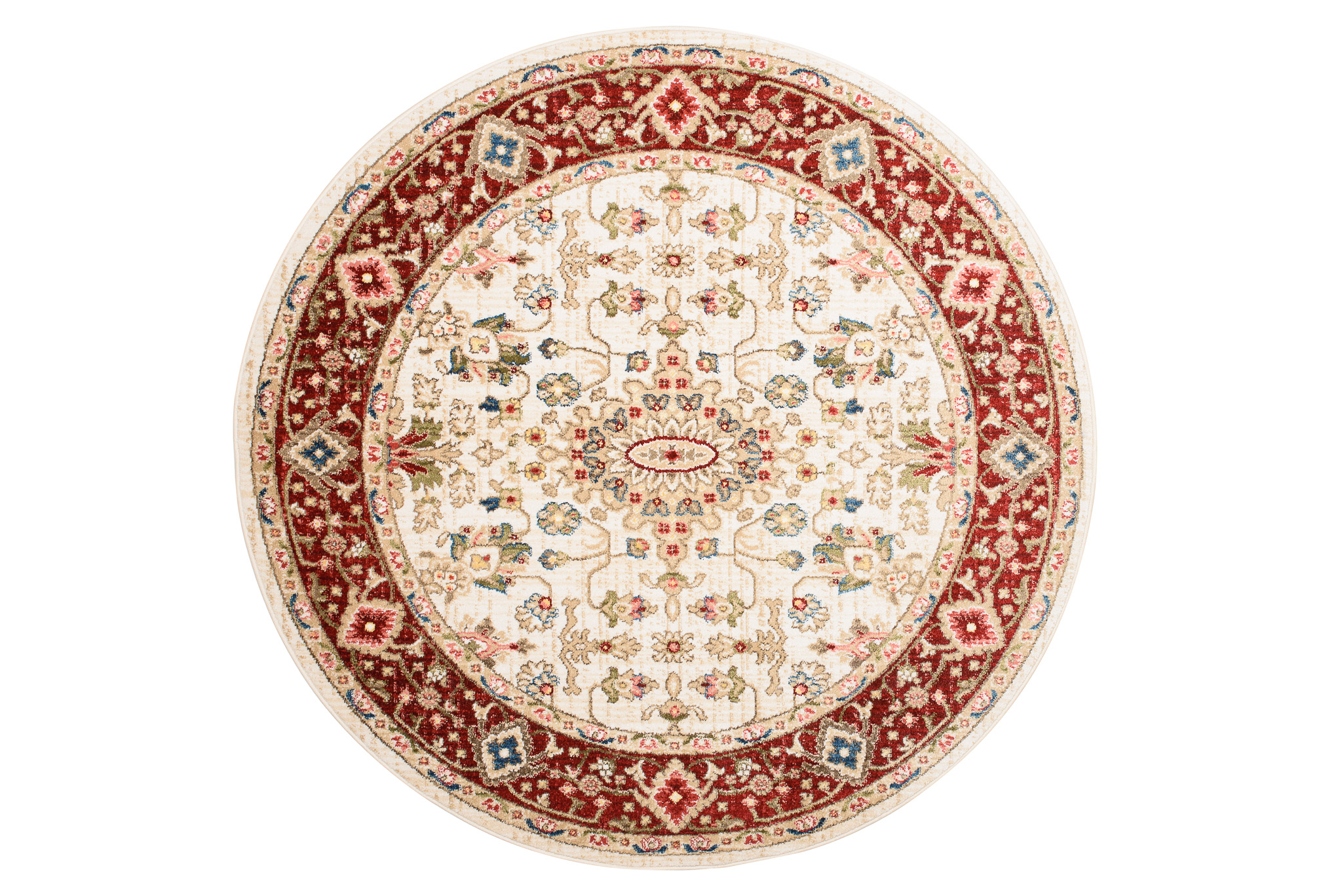 Rivoli-Teppiche sind eine Kollektion traditioneller runder Teppiche, die jedem Raum einen Hauch von Eleganz und Wärme verleihen. Mit Rot-, Blau- und Cremetönen sind diese Teppiche perfekt, um Ihrem Raum einen klassischen, raffinierten Look zu verleihen. Diese aus hochwertigen Materialien hergestellten Teppiche sind weich und strapazierfähig und eignen sich daher perfekt für stark beanspruchte Bereiche. Die traditionellen Muster, inspiriert von klassischen Motiven, verleihen Ihren Böden Tiefe und Charakter. Die Teppiche sind OEKOTEX-zertifiziert, sicher für Mensch und Tier und lösen keine Allergien aus. Der kurze Flor des Teppichs lässt sich sehr einfach absaugen, auch mit Hilfe von Saugrobotern.