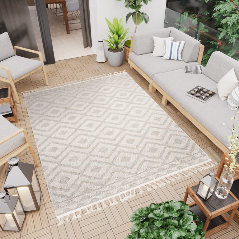 Timber Indoor– und Outdoor-Teppichkollektion ist die perfekte Kombination aus Stil und Funktionalität! Diese aus hochwertigen Materialien hergestellten Teppiche sind so konzipiert, dass sie sowohl innerhalb als auch außerhalb des Hauses verwendet werden können. Timber Kollektion verfügt über eine warme und einladende beige Farbe, die mühelos jeden Einrichtungsstil ergänzt. Eines der herausragenden Merkmale dieser Teppichkollektion sind die Fransen, die jedem Raum einen Hauch von Textur und Charakter verleihen. Die Fransen bieten auch ein lustiges Element, das perfekt ist, um eine entspannte Atmosphäre in Ihrem Zuhause zu schaffen.